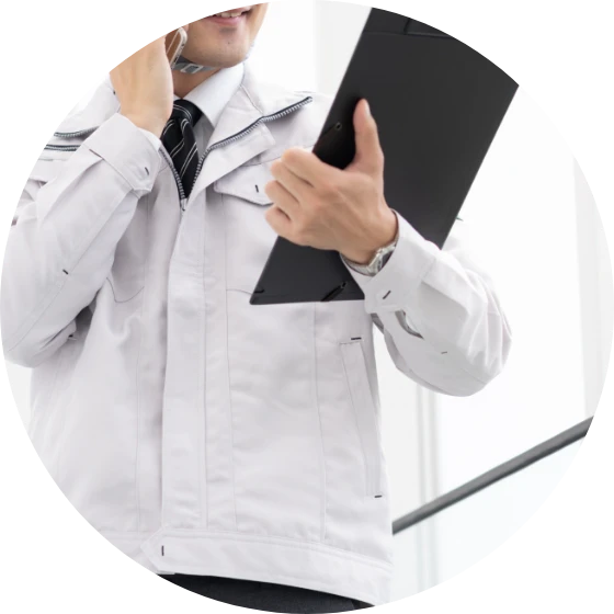 お問い合わせで決まった日時に現地調査へお伺いし、施工箇所の状態を確認いたします。 劣化具合や設備の詳細、寸法など施工箇所の状態を細かくチェックし、そのまま施工できるか、補修がどの程度必要かなどを見極めます。 綿密に点検することで、確実性の高い施工プランを立てることができ、追加費用の発生など、後々のトラブルリスクを減らします。